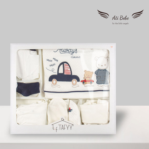 Das 10-teilige Erstausstattungsset von t.f. Tafyy kommt in einer Geschenkbox und ist daher ein ideales Präsent für die Geburt und die ersten Monate danach. Das praktische Set bietet niedliches Design mit angenehm sanftem Tragegefühl auf zarter Babyhaut.